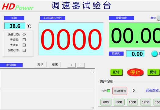 4、旋轉(zhuǎn)角度:輸出軸的轉(zhuǎn)動角度,在主驅(qū)動電機(jī)旋轉(zhuǎn)到需要轉(zhuǎn)速時(shí),一只手按下停車按鈕(一直按,不松開),另一只手點(diǎn)擊電腦復(fù)位按鈕,(在保證調(diào)速器的調(diào)速狀態(tài)為“0”時(shí)),測試顯示旋轉(zhuǎn)角度為0,此時(shí)旋轉(zhuǎn)調(diào)速器的調(diào)速旋鈕,一直旋轉(zhuǎn)到大,看輸出軸的旋轉(zhuǎn)角度和出廠值對照是否合格,然后在旋轉(zhuǎn)到中間任何一個(gè)角度后,穩(wěn)定30秒左右,此時(shí)電機(jī)電腦屏幕“清零”按鈕,